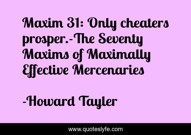 "Howard Tayler Quotes." Quoteslyfe.com, 2025. Fri. 05 Dec. 2025. <https://www.quoteslyfe.com/quote/Maxim-31-Only-cheaters-prosper-The-Seventy-247664>.