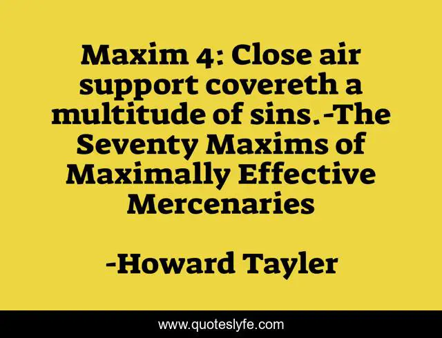 "Howard Tayler Quotes." Quoteslyfe.com, 2025. Fri. 05 Dec. 2025. <https://www.quoteslyfe.com/quote/Maxim-4-Close-air-support-covereth-a-55923>.