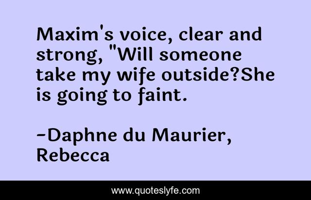 This page presents the quote "Maxim's voice, clear and strong, "Will someone take my wife outside?She is going to faint.". Author of this quote is Daphne du Maurier, Rebecca. .
