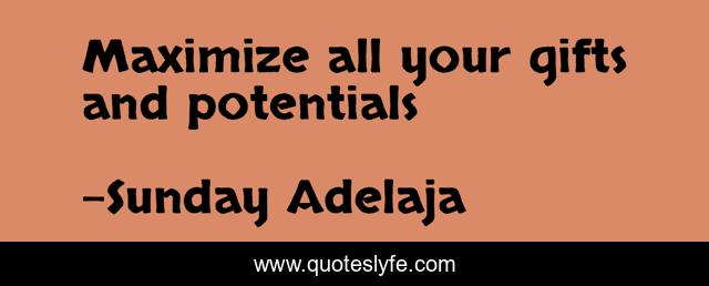 "Sunday Adelaja Quotes." Quoteslyfe.com, 2025. Sat. 06 Dec. 2025. <https://www.quoteslyfe.com/quote/Maximize-all-your-gifts-and-potentials-46276>.