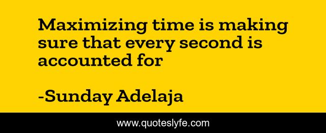 This page presents the quote "Maximizing time is making sure that every second is accounted for". Author of this quote is Sunday Adelaja. This quote is about time-management, blessing, finance, money, employment, work, life, utilizing-time, job,.