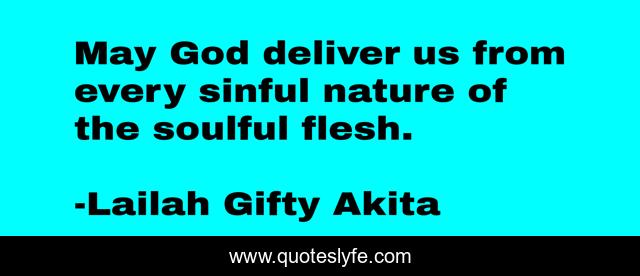 This page presents the quote "May God deliver us from every sinful nature of the soulful flesh.". Author of this quote is Lailah Gifty Akita. This quote is about christian, god, deliverance, inspirational, sinful, enthusiasm,.