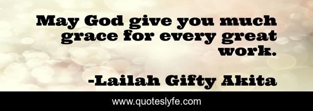 This page presents the quote "May God give you much grace for every great work.". Author of this quote is Lailah Gifty Akita. This quote is about faith, god, work, deeds, encouragement, christian-living, self-help, inner-strength, grace,.