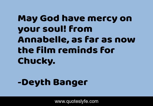This page presents the quote "May God have mercy on your soul! from Annabelle, as far as now the film reminds for Chucky.". Author of this quote is Deyth Banger. This quote is about mercy, chucky, god, soul, annabelle, film,.