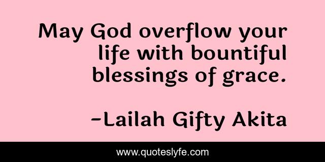This page presents the quote "May God overflow your life with bountiful blessings of grace.". Author of this quote is Lailah Gifty Akita. This quote is about faith, life, christian, joyful-living, religion, wishes, answered-prayers, blessings, grace,.