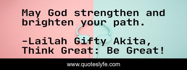 "Lailah Gifty Akita, Think Great: Be Great! Quotes." Quoteslyfe.com, 2025. Fri. 05 Dec. 2025. <https://www.quoteslyfe.com/quote/May-God-strengthen-and-brighten-your-path-201076>.