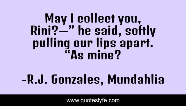 "R.J. Gonzales, Mundahlia Quotes." Quoteslyfe.com, 2025. Fri. 05 Dec. 2025. <https://www.quoteslyfe.com/quote/May-I-collect-you-Rini-he-said-189033>.