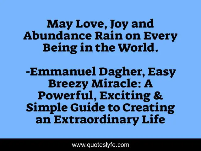"Emmanuel Dagher, Easy Breezy Miracle: A Powerful, Exciting & Simple Guide to Creating an Extraordinary Life Quotes." Quoteslyfe.com, 2025. Tue. 09 Dec. 2025. <https://www.quoteslyfe.com/quote/May-Love-Joy-and-Abundance-Rain-on-142831>.