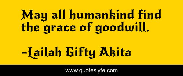 This page presents the quote "May all humankind find the grace of goodwill.". Author of this quote is Lailah Gifty Akita. This quote is about revival, goodwill, intercessor-prayer, warfare-prayers, humankind, deliverance, inspirational, enthusiasm, grace,.