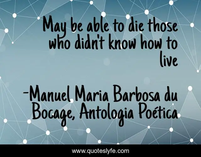 This page presents the quote "May be able to die those who didn't know how to live". Author of this quote is Manuel Maria Barbosa du Bocage, Antologia Poética. This quote is about life, death,.