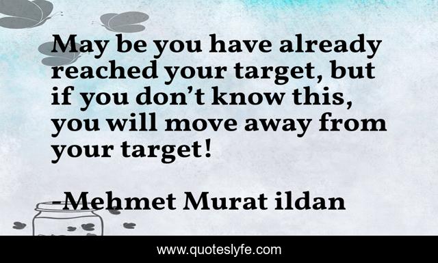 This page presents the quote "May be you have already reached your target, but if you don’t know this, you will move away from your target!". Author of this quote is Mehmet Murat ildan. This quote is about target, move-away, murat-ildan, reaching-target, reaching-for-your-dreams, turkish-literature, turkish-writers, reaching-your-goals,.