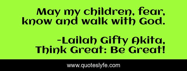 "Lailah Gifty Akita, Think Great: Be Great! Quotes." Quoteslyfe.com, 2025. Sun. 07 Dec. 2025. <https://www.quoteslyfe.com/quote/May-my-children-fear-know-and-walk-85227>.