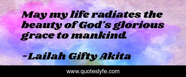 This page presents the quote "May my life radiates the beauty of God's glorious grace to mankind.". Author of this quote is Lailah Gifty Akita. This quote is about grace-of-god, mankind,.