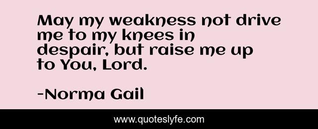 This page presents the quote "May my weakness not drive me to my knees in despair, but raise me up to You, Lord.". Author of this quote is Norma Gail. .