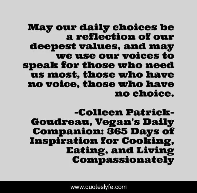 "Colleen Patrick-Goudreau, Vegan's Daily Companion: 365 Days of Inspiration for Cooking, Eating, and Living Compassionately Quotes." Quoteslyfe.com, 2025. Fri. 05 Dec. 2025. <https://www.quoteslyfe.com/quote/May-our-daily-choices-be-a-reflection-73077>.