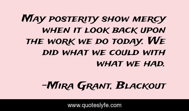 This page presents the quote "May posterity show mercy when it look back upon the work we do today. We did what we could with what we had.". Author of this quote is Mira Grant, Blackout. .