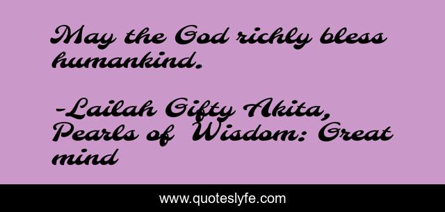 "Lailah Gifty Akita, Pearls of Wisdom: Great mind Quotes." Quoteslyfe.com, 2025. Mon. 08 Dec. 2025. <https://www.quoteslyfe.com/quote/May-the-God-richly-bless-humankind-62378>.