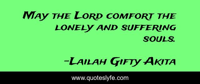 This page presents the quote "May the Lord comfort the lonely and suffering souls.". Author of this quote is Lailah Gifty Akita. This quote is about confidence, comfort, positive, motivational, wisdom-of-lailah-gifty-akita, suffering, optimistic, christian-life,.