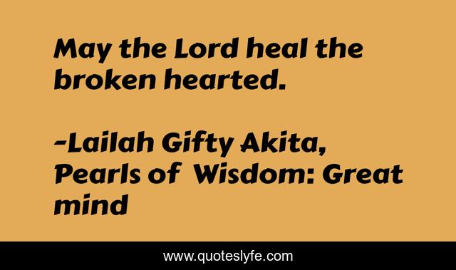 "Lailah Gifty Akita, Pearls of Wisdom: Great mind Quotes." Quoteslyfe.com, 2025. Sat. 06 Dec. 2025. <https://www.quoteslyfe.com/quote/May-the-Lord-heal-the-broken-hearted-111212>.