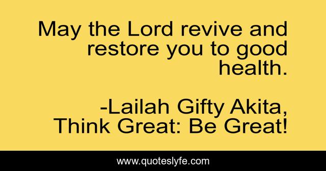 "Lailah Gifty Akita, Think Great: Be Great! Quotes." Quoteslyfe.com, 2025. Fri. 05 Dec. 2025. <https://www.quoteslyfe.com/quote/May-the-Lord-revive-and-restore-you-114915>.