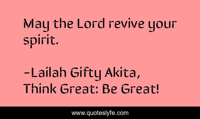 "Lailah Gifty Akita, Think Great: Be Great! Quotes." Quoteslyfe.com, 2025. Sat. 06 Dec. 2025. <https://www.quoteslyfe.com/quote/May-the-Lord-revive-your-spirit-78450>.