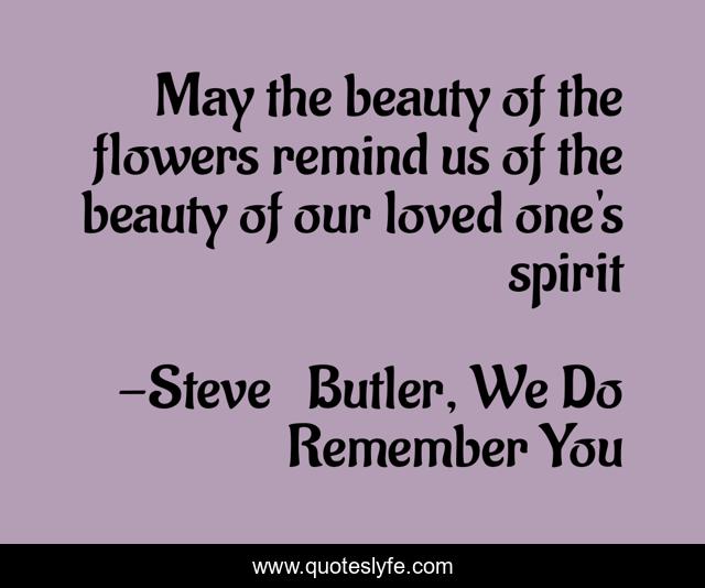 This page presents the quote "May the beauty of the flowers remind us of the beauty of our loved one's spirit". Author of this quote is Steve Butler, We Do Remember You. This quote is about grief, enthusiasm, inspirational,.