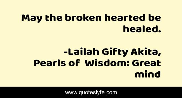 "Lailah Gifty Akita, Pearls of Wisdom: Great mind Quotes." Quoteslyfe.com, 2025. Sat. 06 Dec. 2025. <https://www.quoteslyfe.com/quote/May-the-broken-hearted-be-healed-76231>.