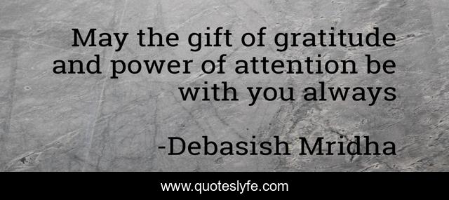 This page presents the quote "May the gift of gratitude and power of attention be with you always". Author of this quote is Debasish Mridha. This quote is about gratitude, philosophy, blessing, debasish-mridha, power-of-attention, quotes, inspirational, enthusiasm, debasish-mridha-m-d,.