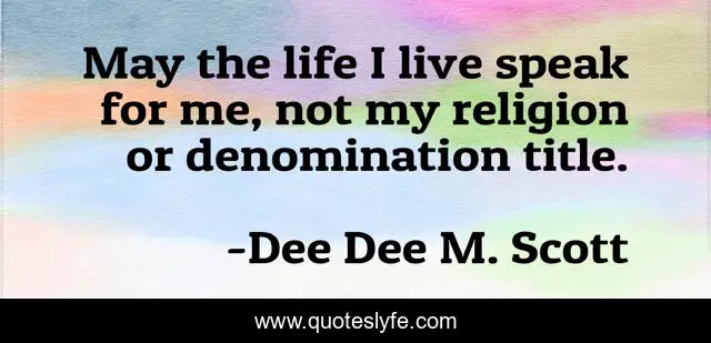 This page presents the quote "May the life I live speak for me, not my religion or denomination title.". Author of this quote is Dee Dee M. Scott. .