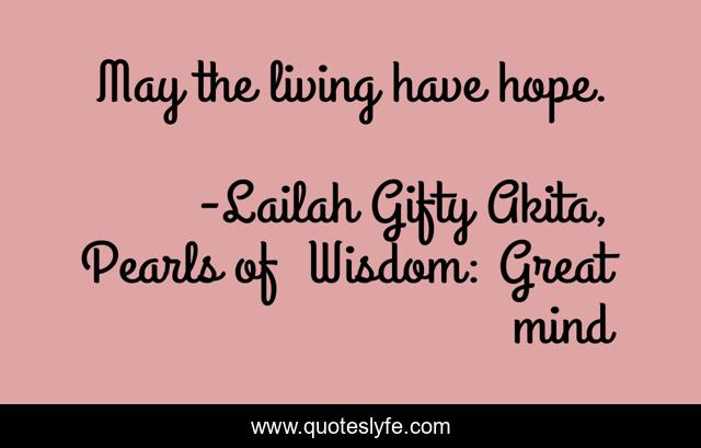 "Lailah Gifty Akita, Pearls of Wisdom: Great mind Quotes." Quoteslyfe.com, 2025. Tue. 09 Dec. 2025. <https://www.quoteslyfe.com/quote/May-the-living-have-hope-105429>.