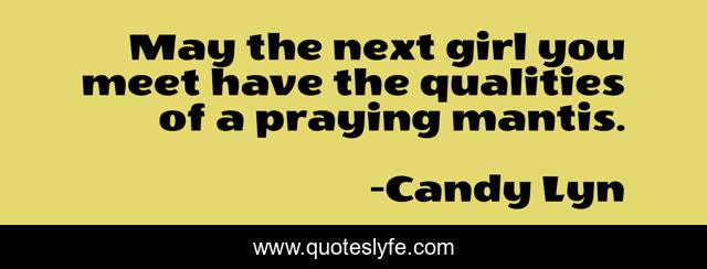 This page presents the quote "May the next girl you meet have the qualities of a praying mantis.". Author of this quote is Candy Lyn. This quote is about death, hate, love-hurts,.
