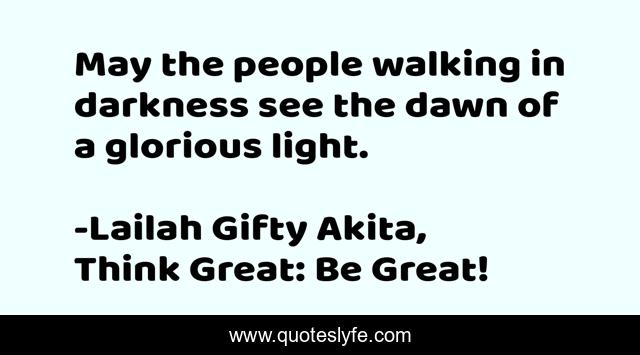"Lailah Gifty Akita, Think Great: Be Great! Quotes." Quoteslyfe.com, 2025. Mon. 08 Dec. 2025. <https://www.quoteslyfe.com/quote/May-the-people-walking-in-darkness-see-107200>.