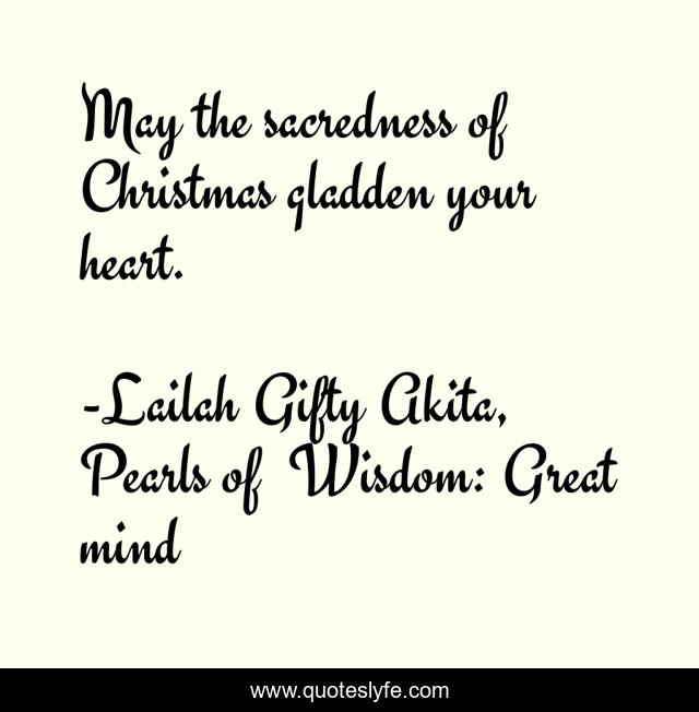 "Lailah Gifty Akita, Pearls of Wisdom: Great mind Quotes." Quoteslyfe.com, 2025. Mon. 08 Dec. 2025. <https://www.quoteslyfe.com/quote/May-the-sacredness-of-Christmas-gladden-your-97182>.