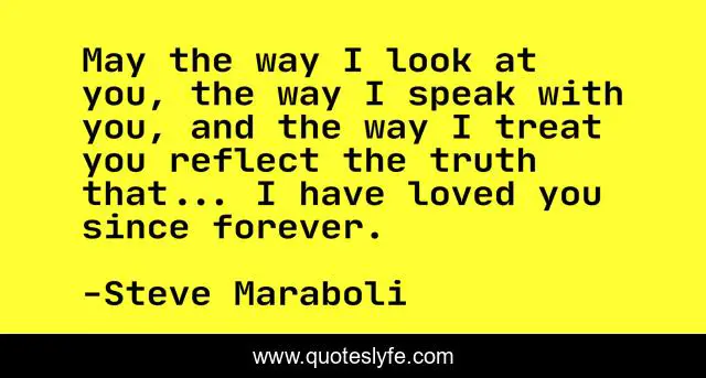 This page presents the quote "May the way I look at you, the way I speak with you, and the way I treat you reflect the truth that... I have loved you since forever.". Author of this quote is Steve Maraboli. This quote is about relationships, true-love, forever, love, actions, in-love, affection,.