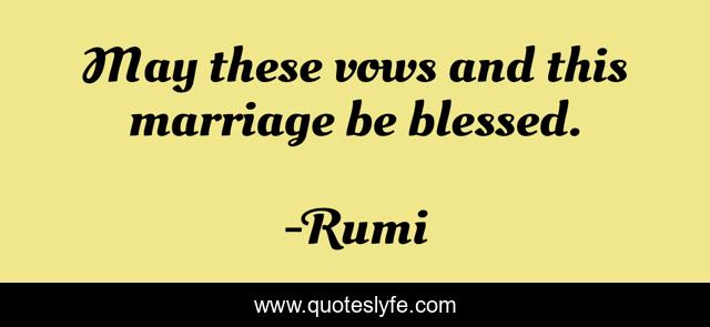 This page presents the quote "May these vows and this marriage be blessed.". Author of this quote is Rumi. This quote is about may, blessed, vows,.