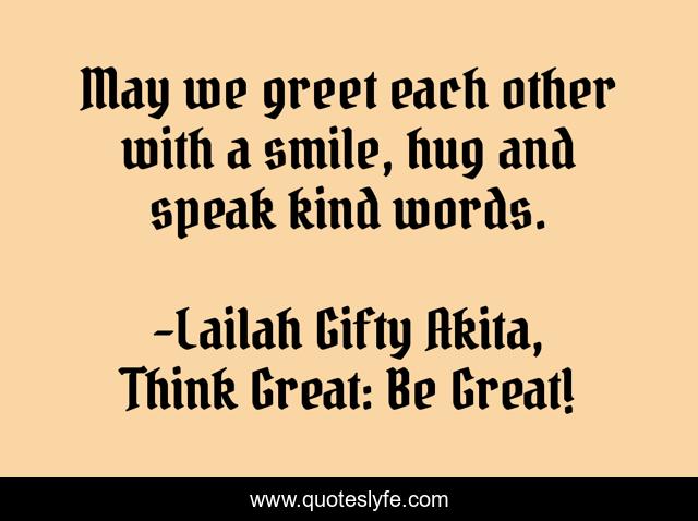 "Lailah Gifty Akita, Think Great: Be Great! Quotes." Quoteslyfe.com, 2025. Sat. 06 Dec. 2025. <https://www.quoteslyfe.com/quote/May-we-greet-each-other-with-a-121928>.