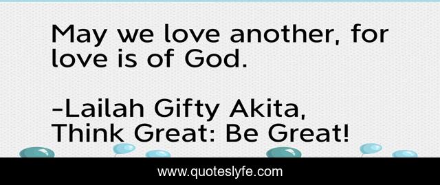 "Lailah Gifty Akita, Think Great: Be Great! Quotes." Quoteslyfe.com, 2025. Sat. 06 Dec. 2025. <https://www.quoteslyfe.com/quote/May-we-love-another-for-love-is-62479>.