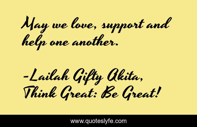 "Lailah Gifty Akita, Think Great: Be Great! Quotes." Quoteslyfe.com, 2025. Mon. 08 Dec. 2025. <https://www.quoteslyfe.com/quote/May-we-love-support-and-help-one-147178>.