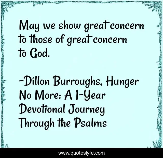"Dillon Burroughs, Hunger No More: A 1-Year Devotional Journey Through the Psalms Quotes." Quoteslyfe.com, 2025. Sat. 06 Dec. 2025. <https://www.quoteslyfe.com/quote/May-we-show-great-concern-to-those-150640>.