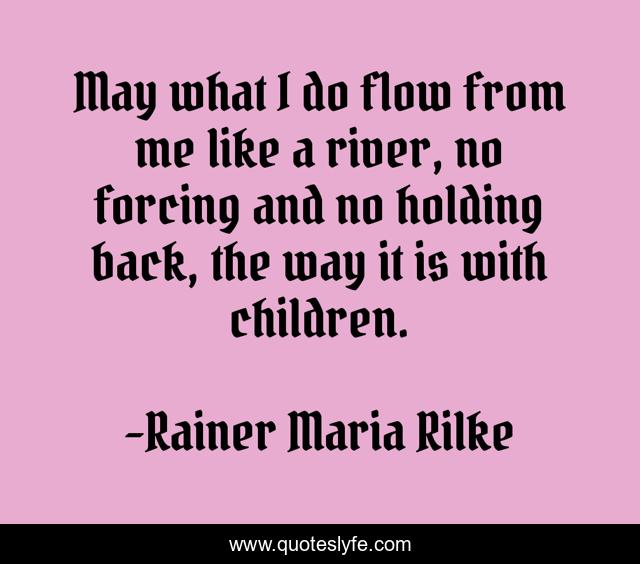 This page presents the quote "May what I do flow from me like a river, no forcing and no holding back, the way it is with children.". Author of this quote is Rainer Maria Rilke. This quote is about moral-courage, honesty, flow, river, integrity, children,.