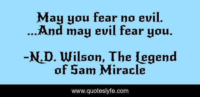 "N.D. Wilson, The Legend of Sam Miracle Quotes." Quoteslyfe.com, 2025. Sat. 06 Dec. 2025. <https://www.quoteslyfe.com/quote/May-you-fear-no-evil-And-may-246740>.