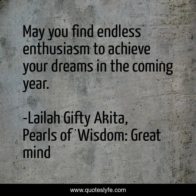 "Lailah Gifty Akita, Pearls of Wisdom: Great mind Quotes." Quoteslyfe.com, 2025. Mon. 15 Dec. 2025. <https://www.quoteslyfe.com/quote/May-you-find-endless-enthusiasm-to-achieve-92669>.