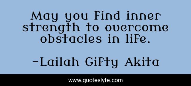 This page presents the quote "May you find inner strength to overcome obstacles in life.". Author of this quote is Lailah Gifty Akita. This quote is about confidence, obstacles, positive, motivational, strength, difficulties-of-life, self-help, overcomer, adversity,.