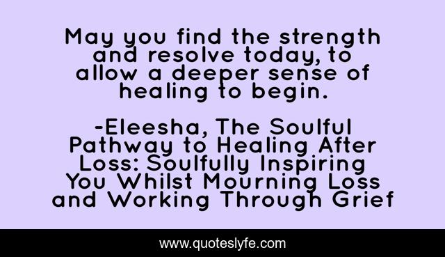 This page presents the quote "May you find the strength and resolve today, to allow a deeper sense of healing to begin.". Author of this quote is Eleesha, The Soulful Pathway to Healing After Loss: Soulfully Inspiring You Whilst Mourning Loss and Working Through Grief. This quote is about empowerment, death, death-of-a-loved-one, positive, motivational, soul, healing-after-loss, quotes, channeling,.