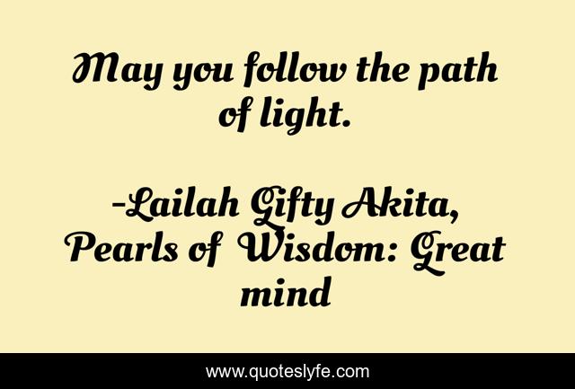 "Lailah Gifty Akita, Pearls of Wisdom: Great mind Quotes." Quoteslyfe.com, 2025. Fri. 05 Dec. 2025. <https://www.quoteslyfe.com/quote/May-you-follow-the-path-of-light-107296>.
