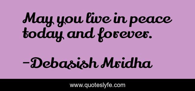 This page presents the quote "May you live in peace today and forever.". Author of this quote is Debasish Mridha. This quote is about life, love, knowledge, inspirational, intelligence, philosophy, wisdom, quotes, affection,.