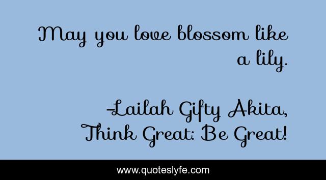 "Lailah Gifty Akita, Think Great: Be Great! Quotes." Quoteslyfe.com, 2025. Mon. 08 Dec. 2025. <https://www.quoteslyfe.com/quote/May-you-love-blossom-like-a-lily-72983>.