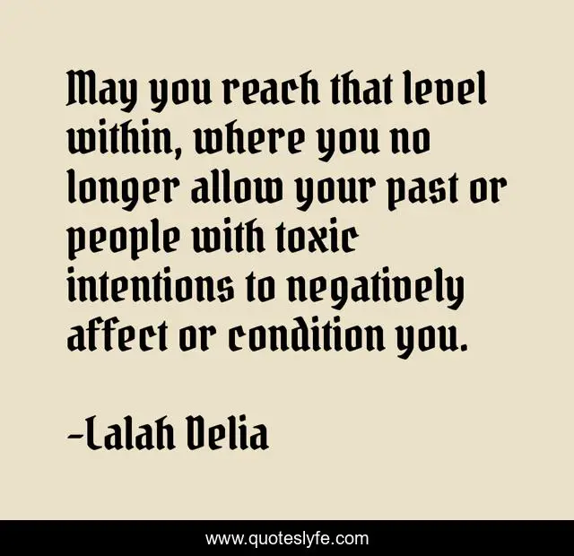May you reach that level within, where you no longer allow your past or people with toxic intentions to negatively affect or condition you.