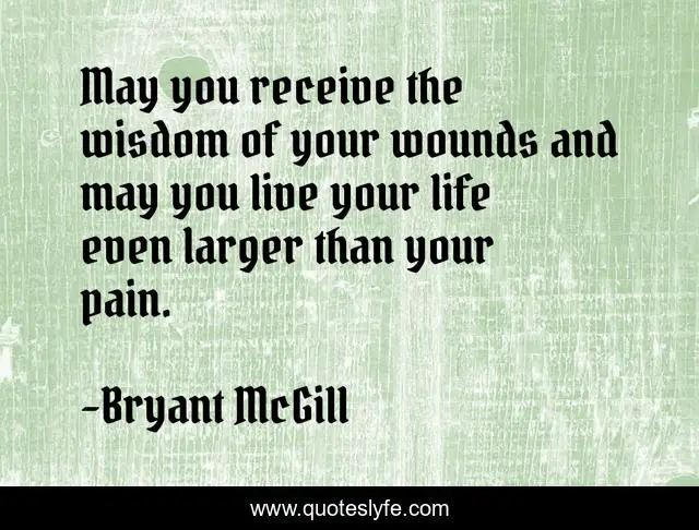 This page presents the quote "May you receive the wisdom of your wounds and may you live your life even larger than your pain.". Author of this quote is Bryant McGill. This quote is about receive, teaching, live, pain, wisdom,.