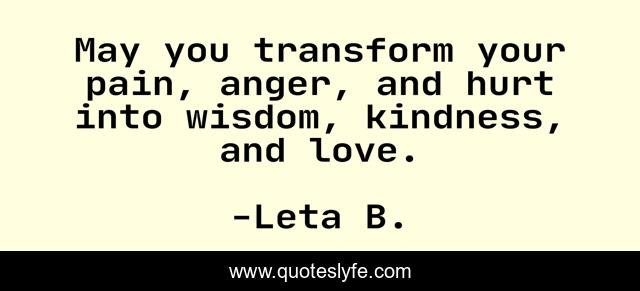 This page presents the quote "May you transform your pain, anger, and hurt into wisdom, kindness, and love.". Author of this quote is Leta B.. This quote is about inspirational-life, enthusiasm, inspirational,.